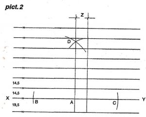 - Dimulai pada garis XY beri tanda garis horizontal secara berurutan,pada jarak 14,5 cm,hingga menuju nok.